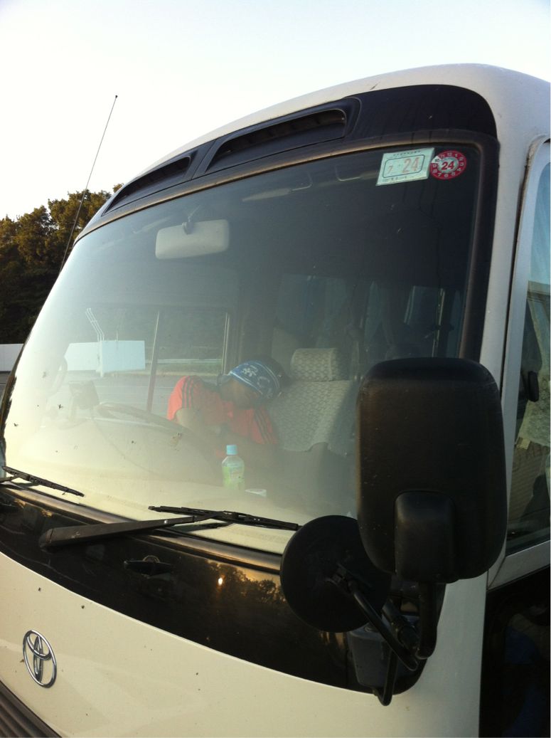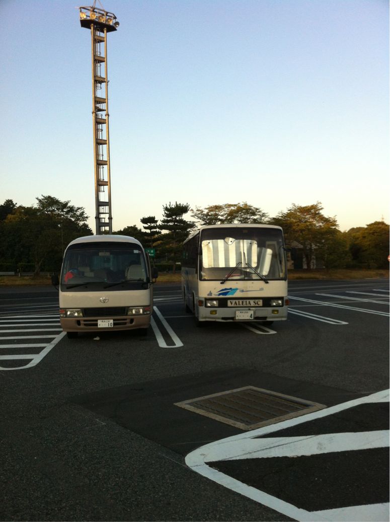 6時頃、岡山県、勝央SAにて、マイクロバスと合流。