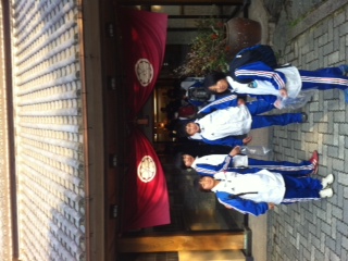 会場に到着し、明日の会場を視察した後に、隣の空き地でトレーニング。